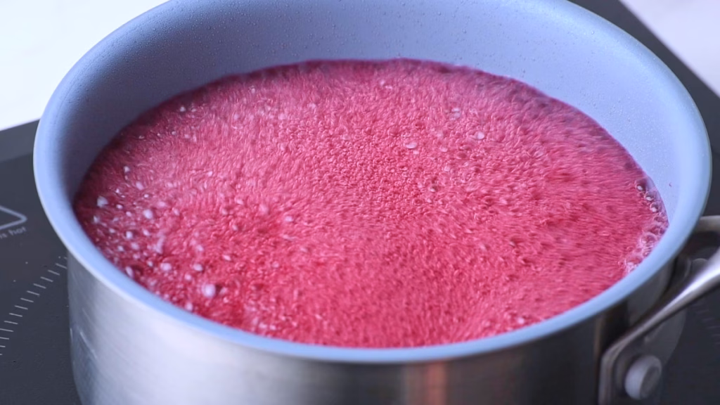 - Add your Kirsch, cherry juice and sugar to the saucepan. Let it come to a boil on high heat, then turn down to medium high and allow to simmer until you are left with about ¼ cup of super concentrated cherry flavored syrup. Allow to cool.