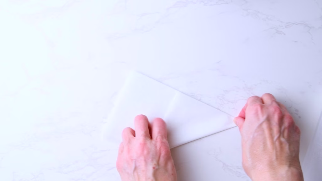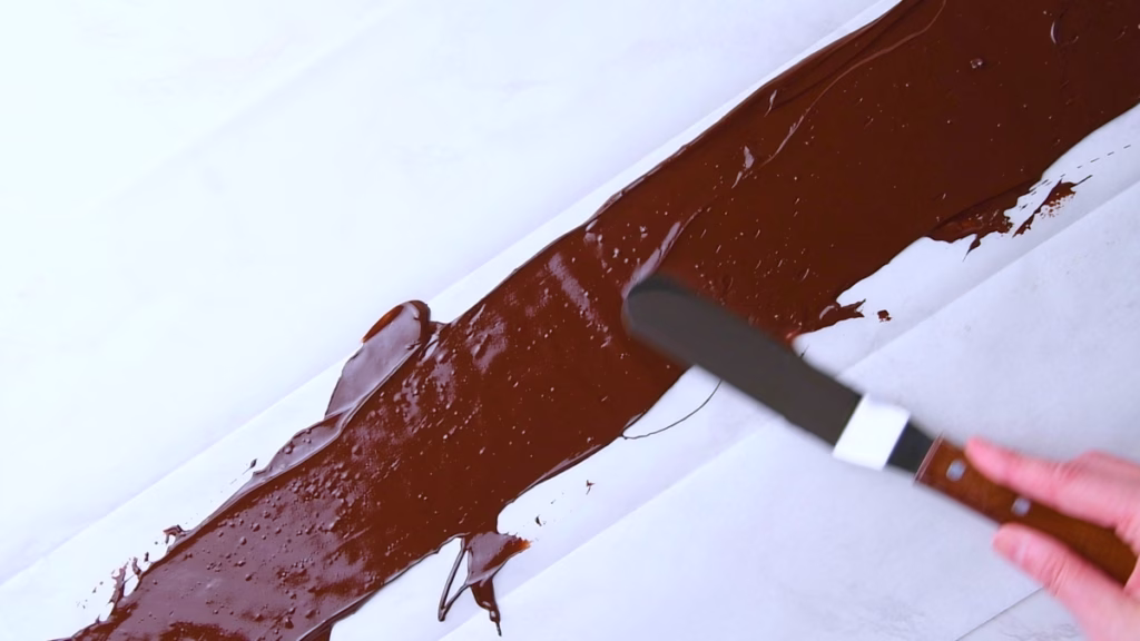 - For the sides, a bench scraper or rubber spatula works best I found. It doesn’t have to be perfect, as it’ll be covered by chocolate.