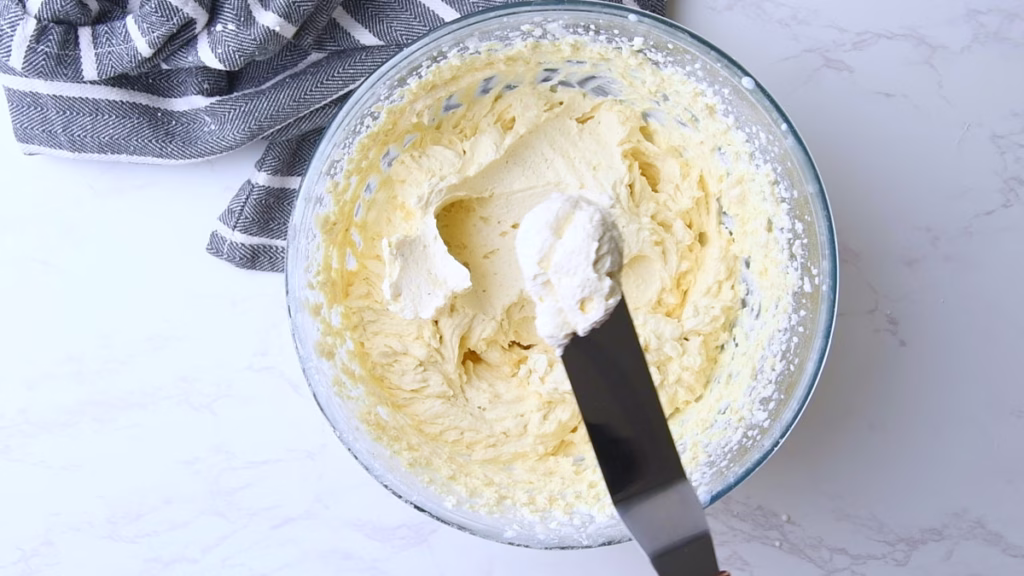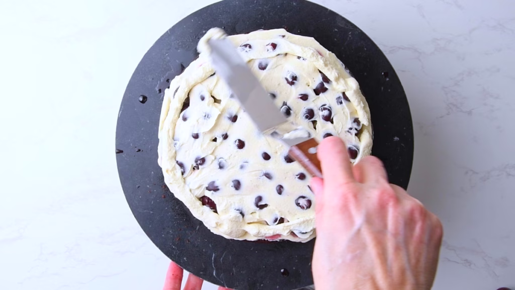 - Add a bit more cream on top of those cherries, so you have an even(ish) base.