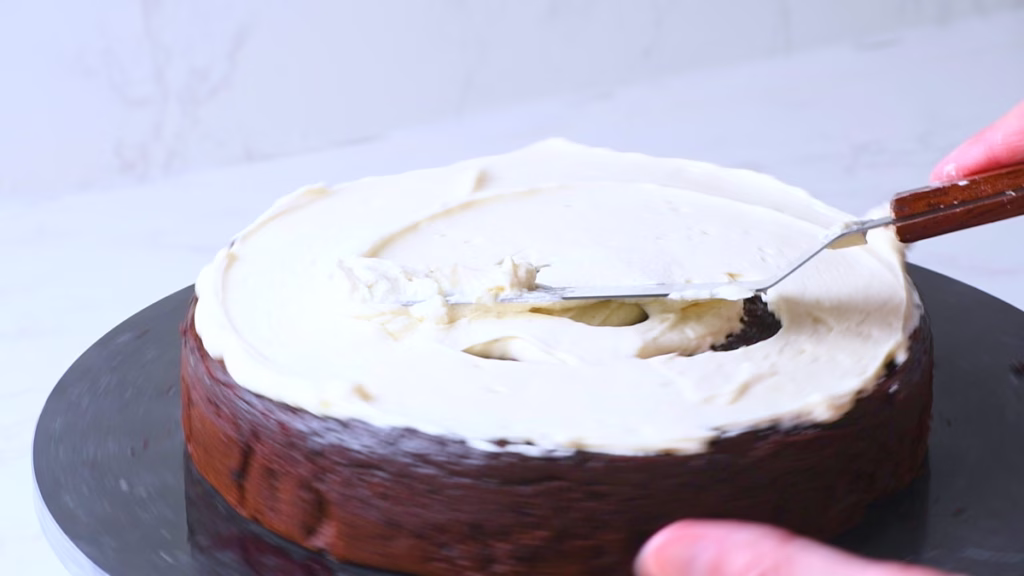 - This works best if you start spreading from the center of the cake towards the sides, turning the cake while doing so. It takes a bit of practice to get it perfect, but we are not after perfection here.