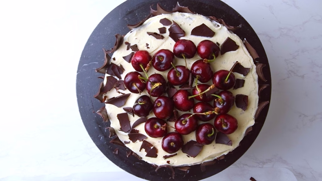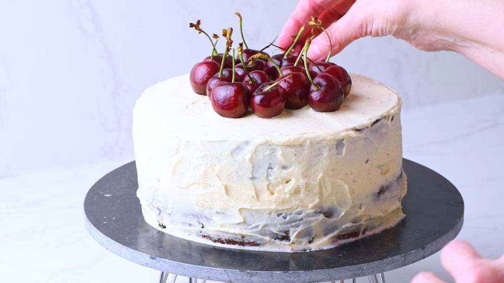 - Step back and admire your Black Forest Protein Cake masterpiece.
