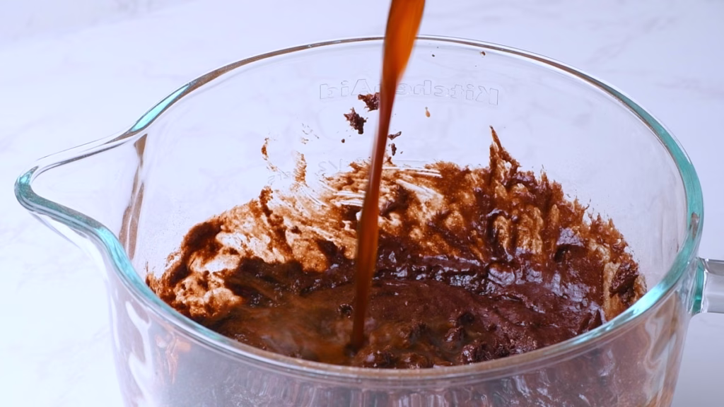 - Coffee – This might be the most unusual ingredient in this cake but trust me it really works. The coffee flavor amps up the chocolate, and the hot liquid gives moisture. I use fresh americano, but instant coffee will be fine.