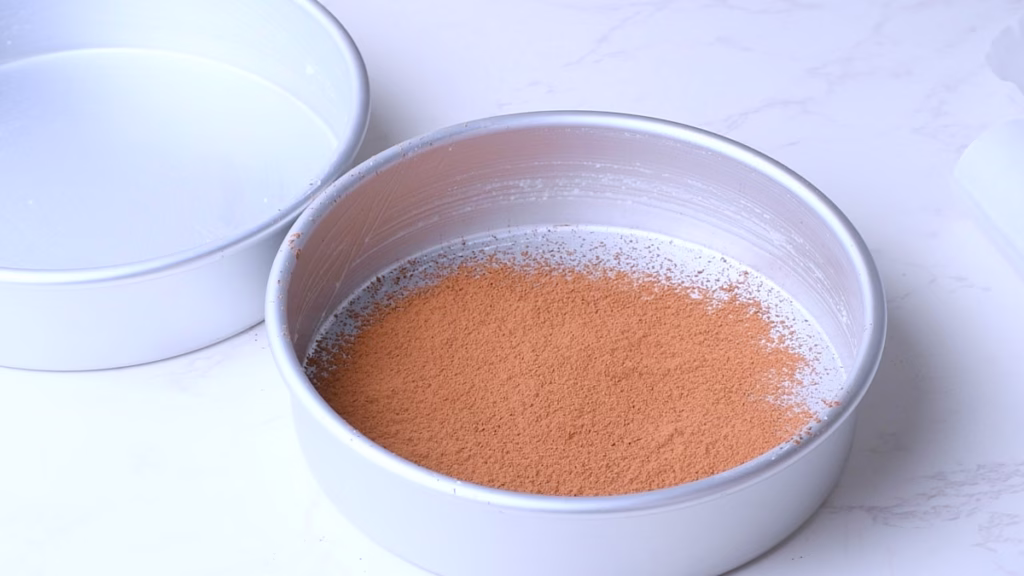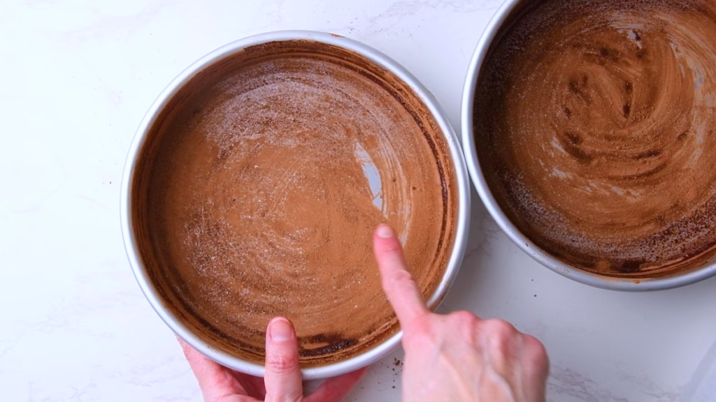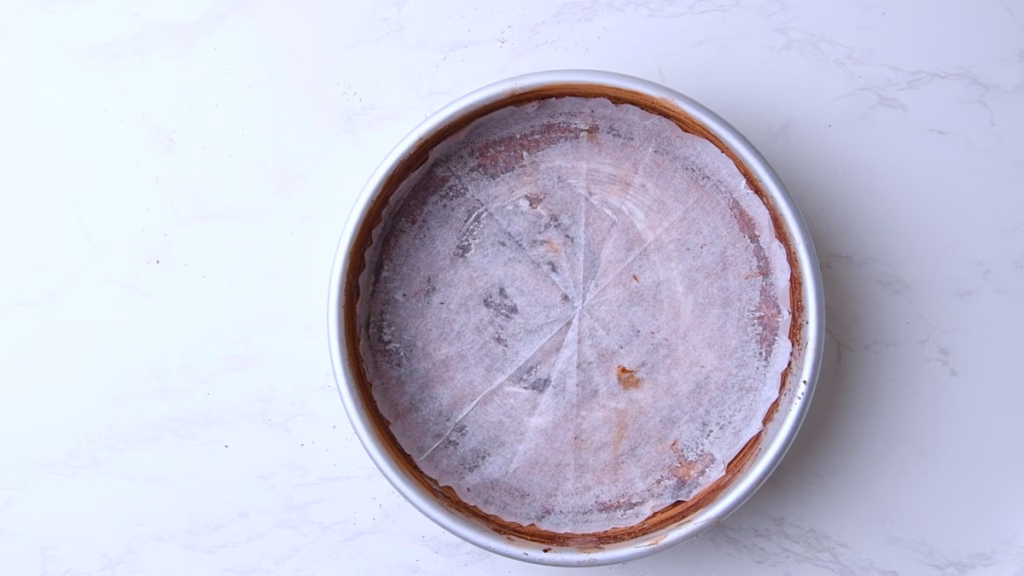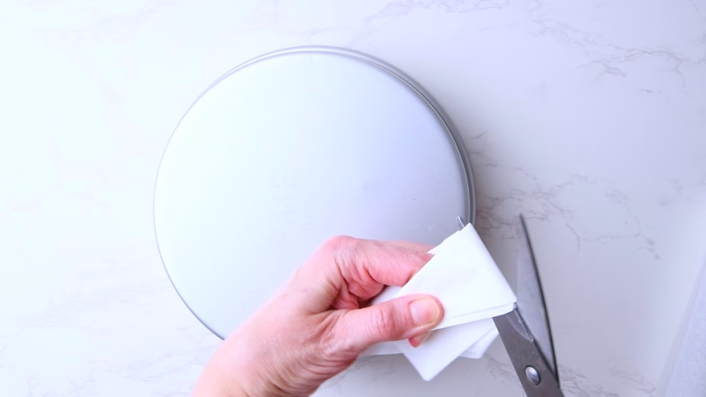 - Line the cake pans with baking parchment (watch the video to see how to do this neatly.)