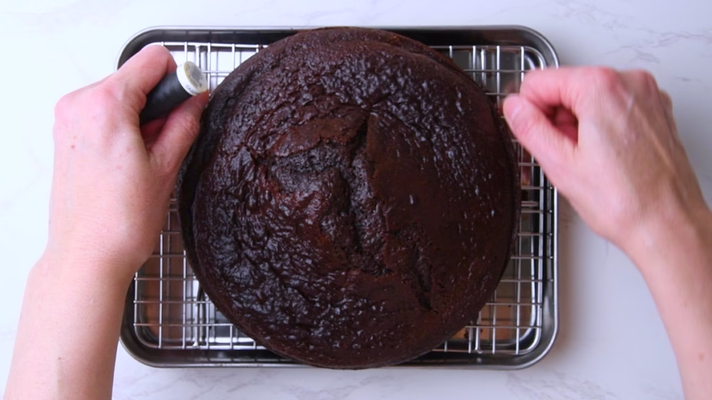 Yes, and I actually recommend it! You can bake the chocolate layers a day early, wrap them tightly in plastic wrap once cooled, and keep them at room temperature. This makes the assembly much less stressful.