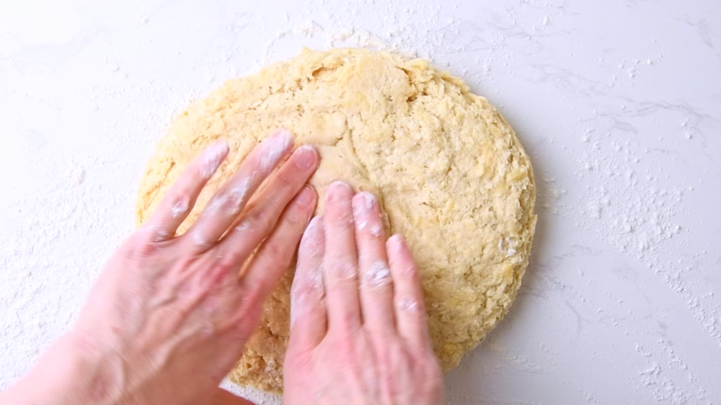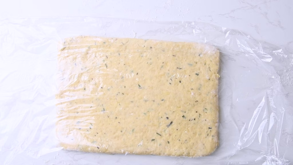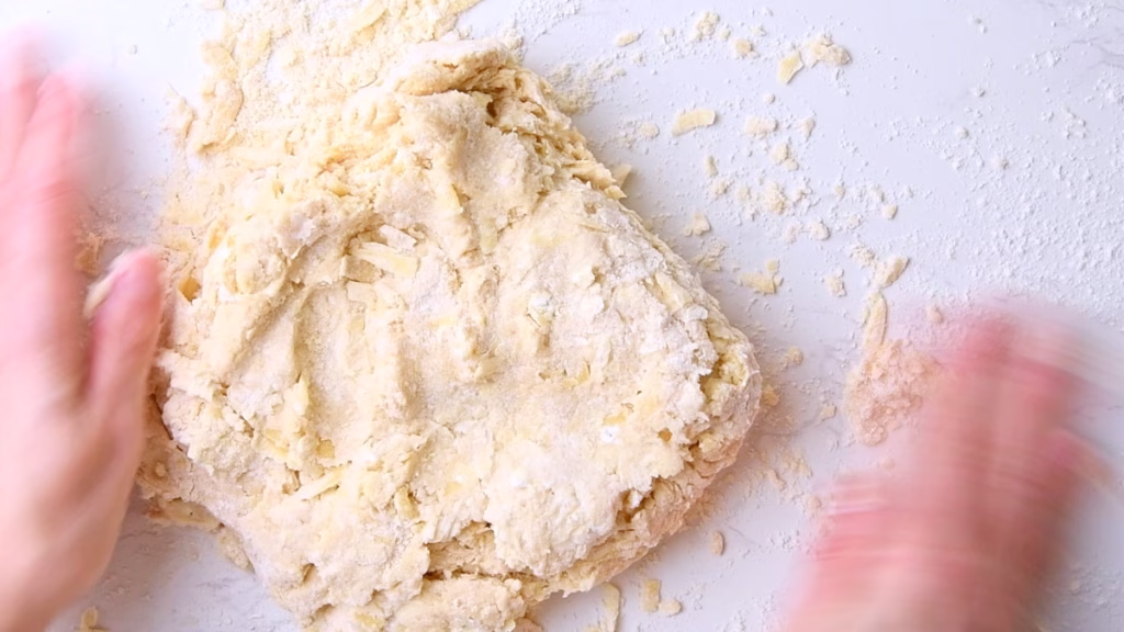 - Repeat the rolling process as above, paying attention to the shape in the last step in particular, as this will be your last rollout, getting the dough to the size you want to make 12 biscuits each about 2 inches square or slightly rectangular.