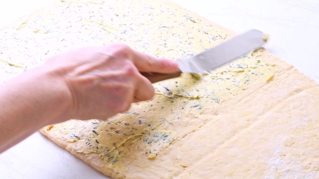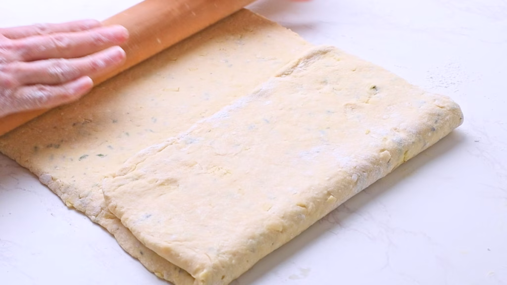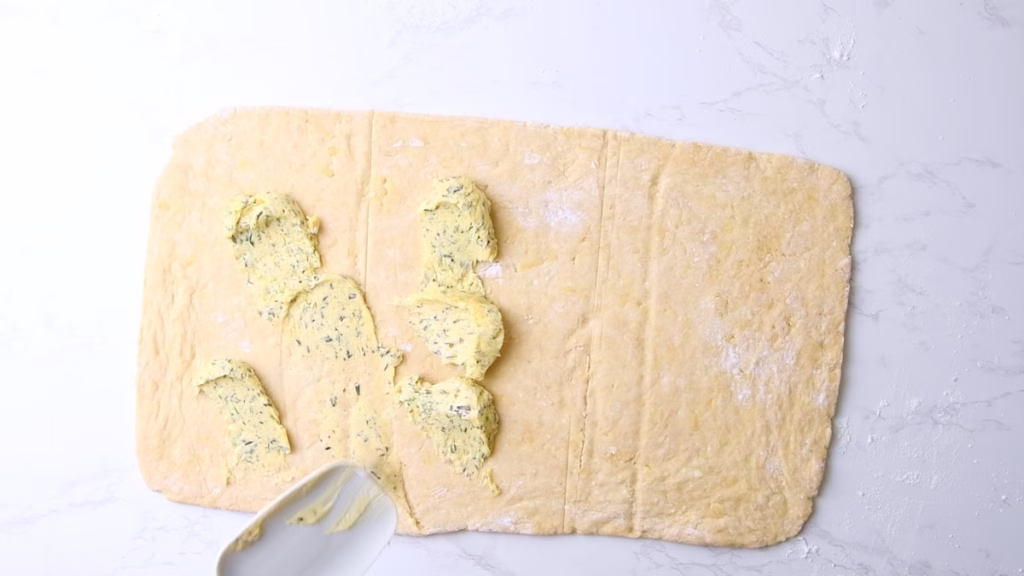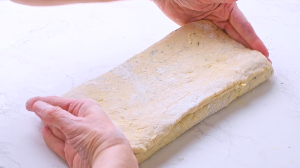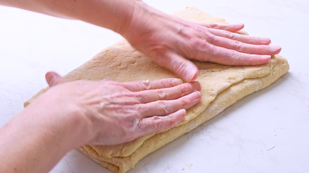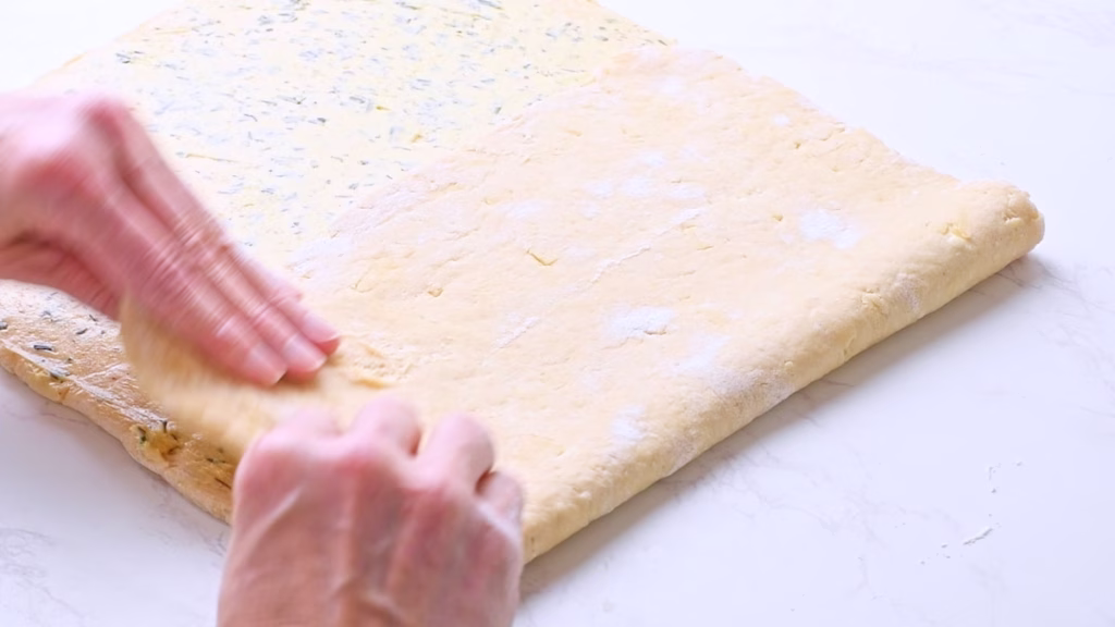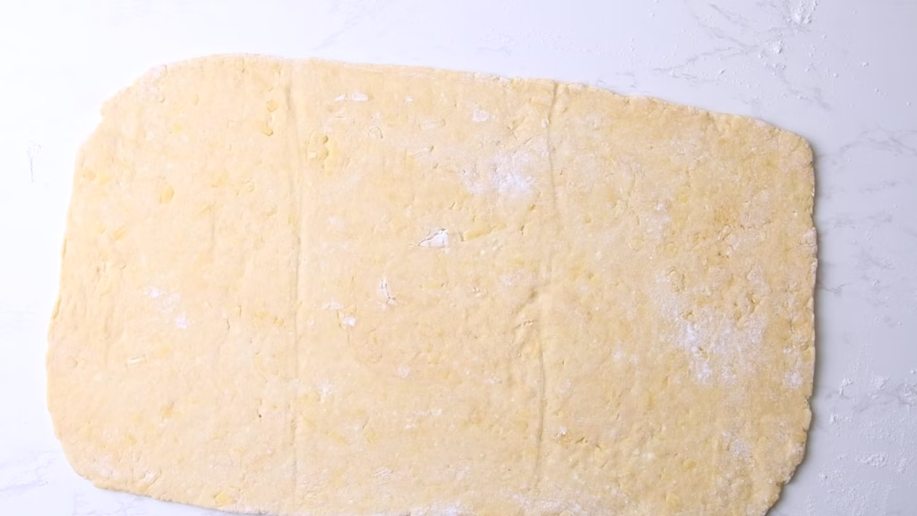 - The final measurement of your dough rectangle should be around 8×6 inch.