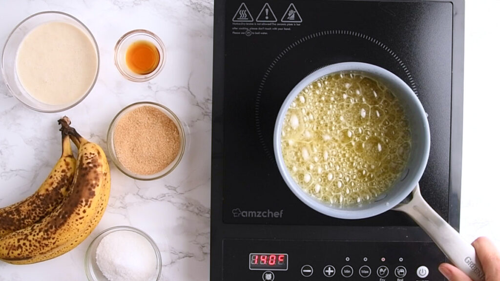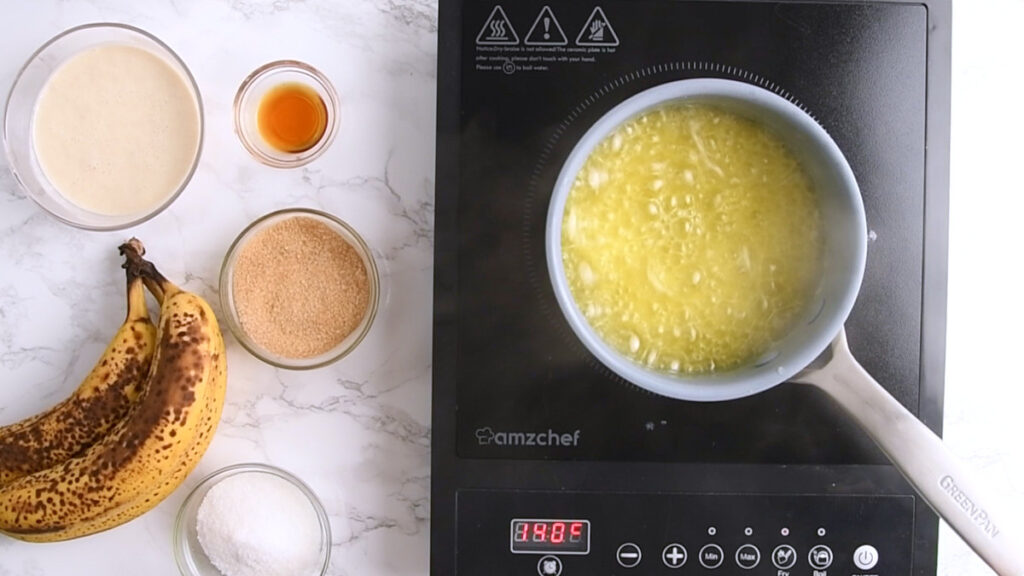 - Over medium-high heat, melt your butter in your saucepan. When it starts to foam, turn the heat down a little and watch it like a hawk. When it’s getting close to browning, the foam will change to larger bubbles and the sound will change. Stir or swirl until you see it browning. This will be very quick!