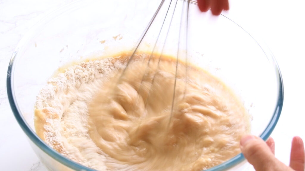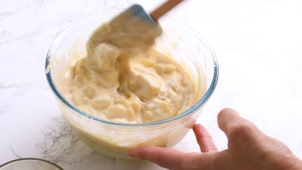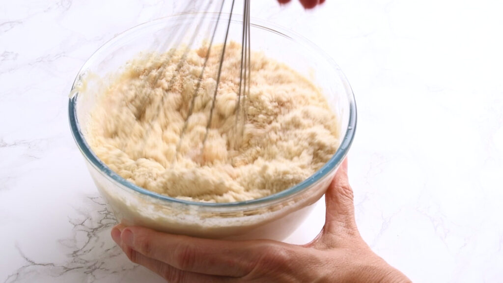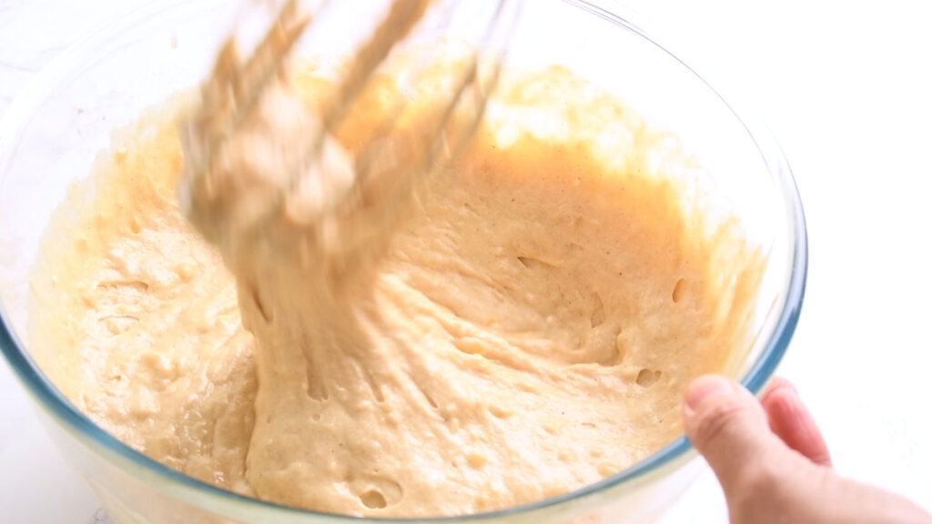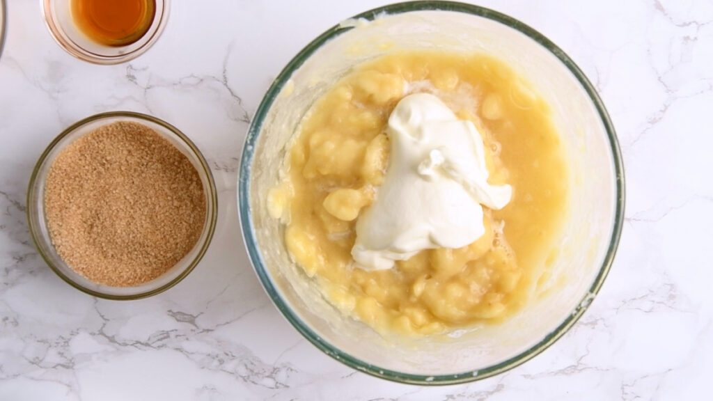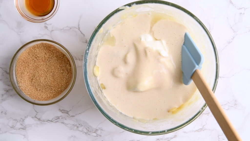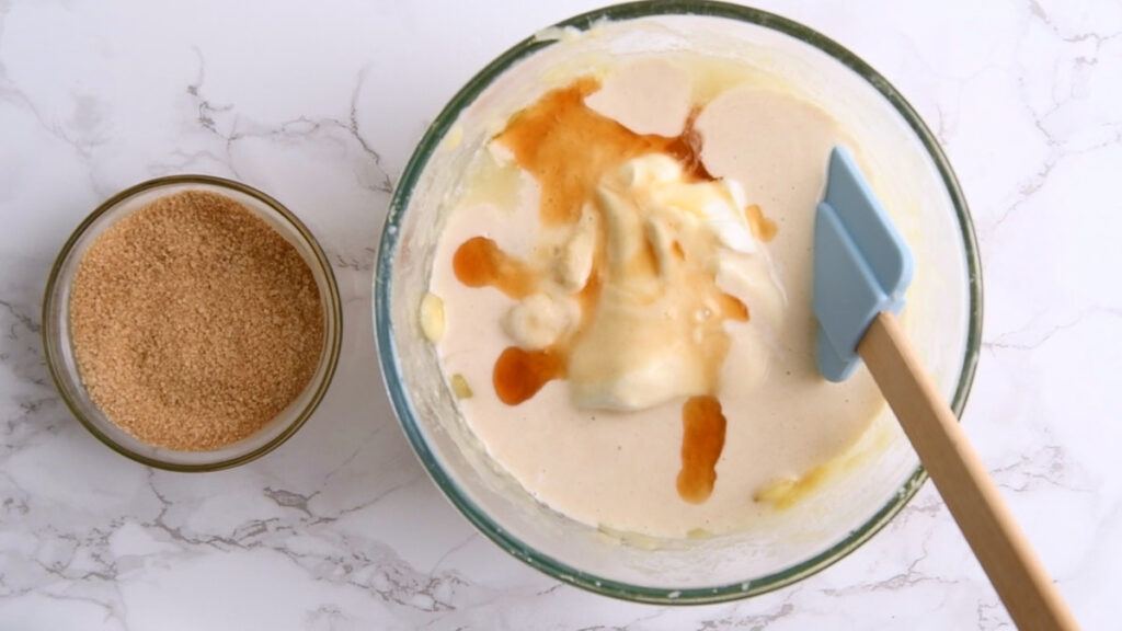 - Using a whisk, mix in the Greek yoghurt, sourdough discard, lemon juice, and vanilla extract.