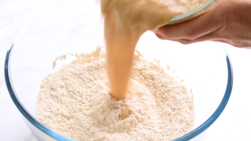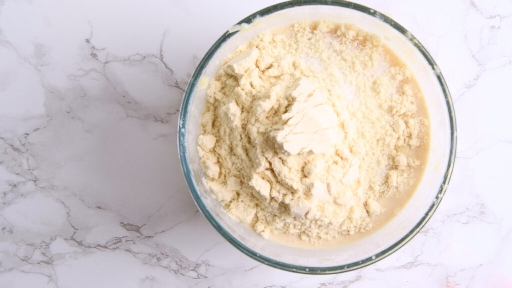 - Flour – I’m using all-purpose flour here, 190g to be exact. Ideally, measure with a digital scale to get the correct amount, as it’s very easy to compact it accidentally when using cups, leading to using much more than intended.