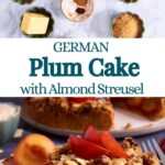 I grew up with German Plum Cake in all versions. From the yeast sheet pan cake with Streusel that my mom made every summer during damson season, to those made with eggy soft batter for the plums to sink into, bakery versions with shortbread base that was oddly tasteless and cardboardy and seemed to stay untouched by anything above it, separated basically from the cake.