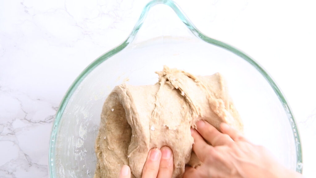Perform 3 sets of stretch and folds roughly every 30 minutes (this doesn’t have to be exact).