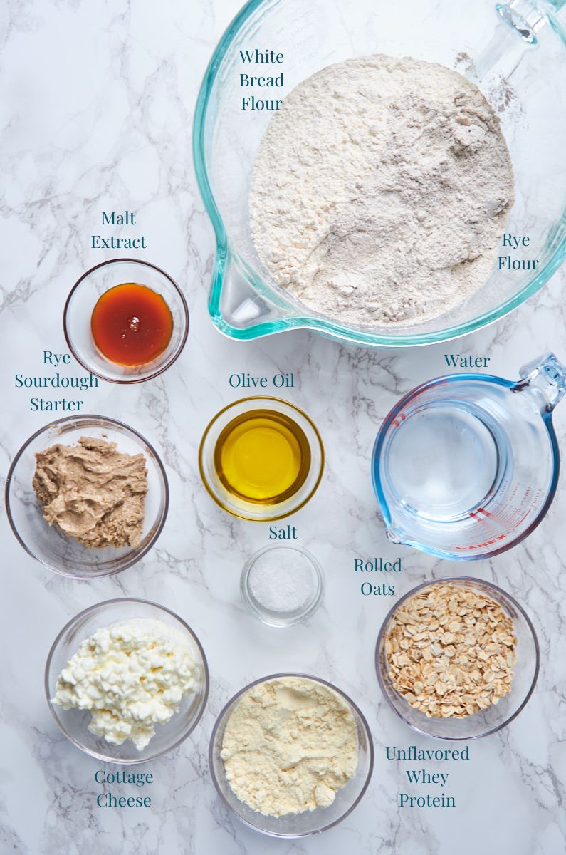 This bread primarily relies on classic rye sourdough ingredients, enhanced with two key protein components. Here’s a closer look at what you’ll need and why each ingredient is important: