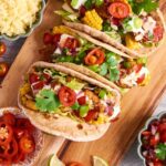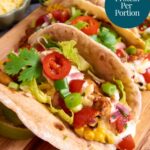 Not that anyone will really notice, but these healthy Chicken Tacos contain a hefty portion of veggies in form of lettuce, tomatoes, avocado, sweetcorn and spring onions. They just feel so at home in the tacos (Wraps? Tortillas?), you won’t even realise you are eating healthy. That’s exactly how I lost 70lb within 1 year: sneaking more plants into my meals in ways I really enjoy.