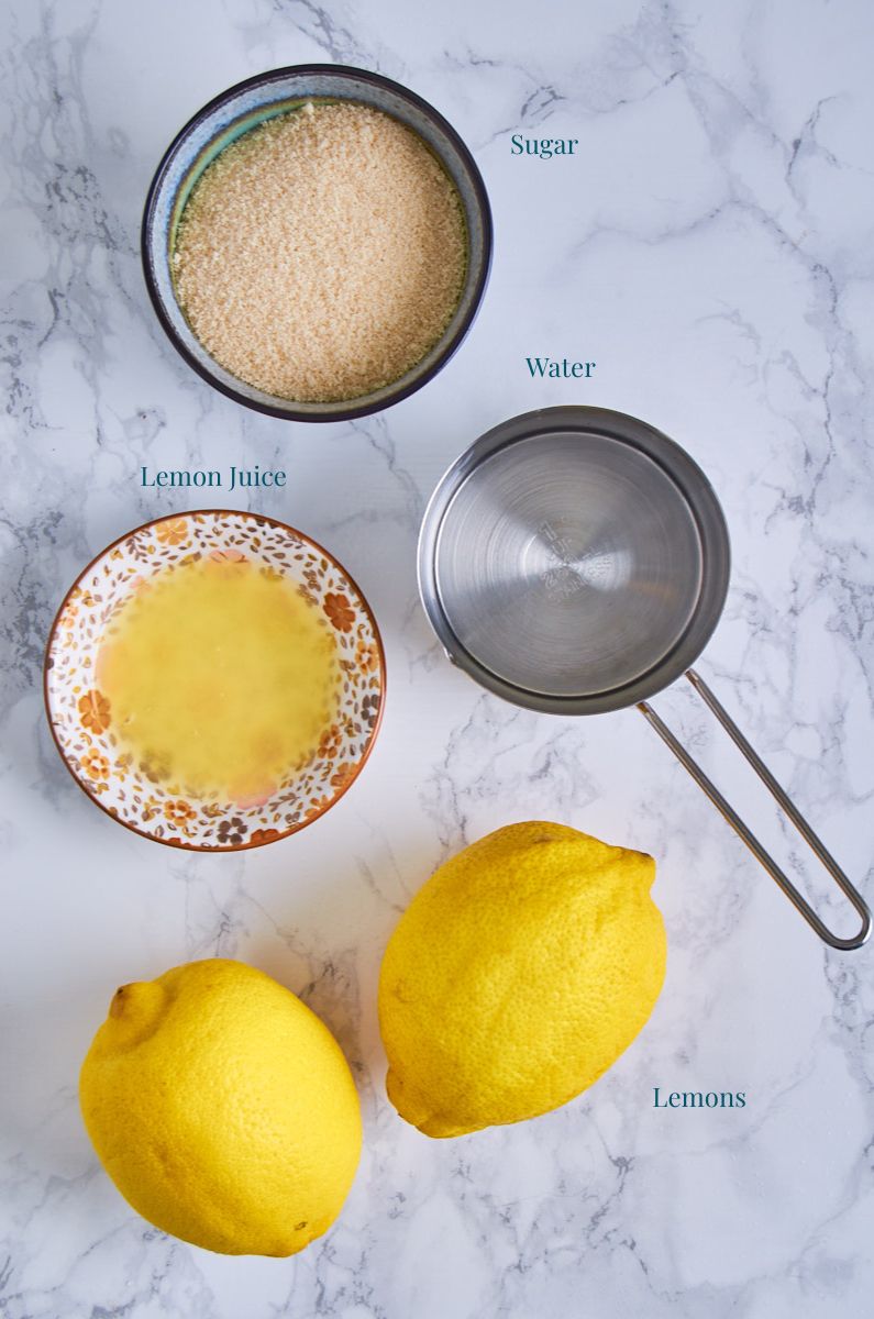 2. In a large saucepan, combine water, granulated sugar, and the juice of 1 lemon. Bring the mixture to a boil.