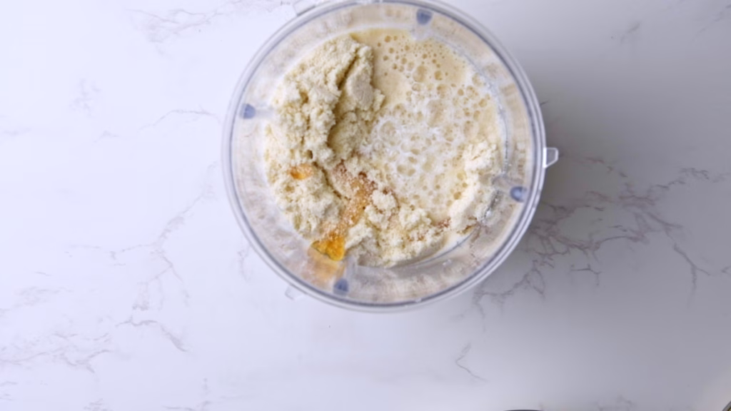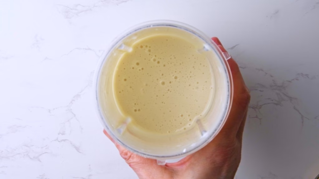 - Blend the cottage cheese, honey and protein powder with the water until smooth.