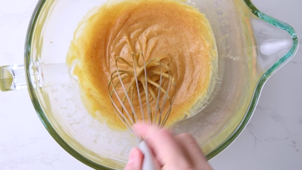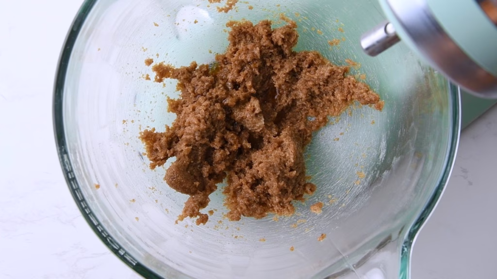 - Using either your whisk or the paddle attachment of your stand mixer, start whisking butter and sugar until slightly lighter in colour. It won’t get as fluffy as a white sugar mix, as the brown sugar is a bit denser due to the high molasses content.