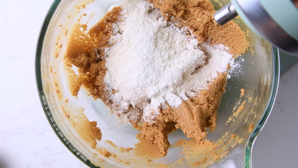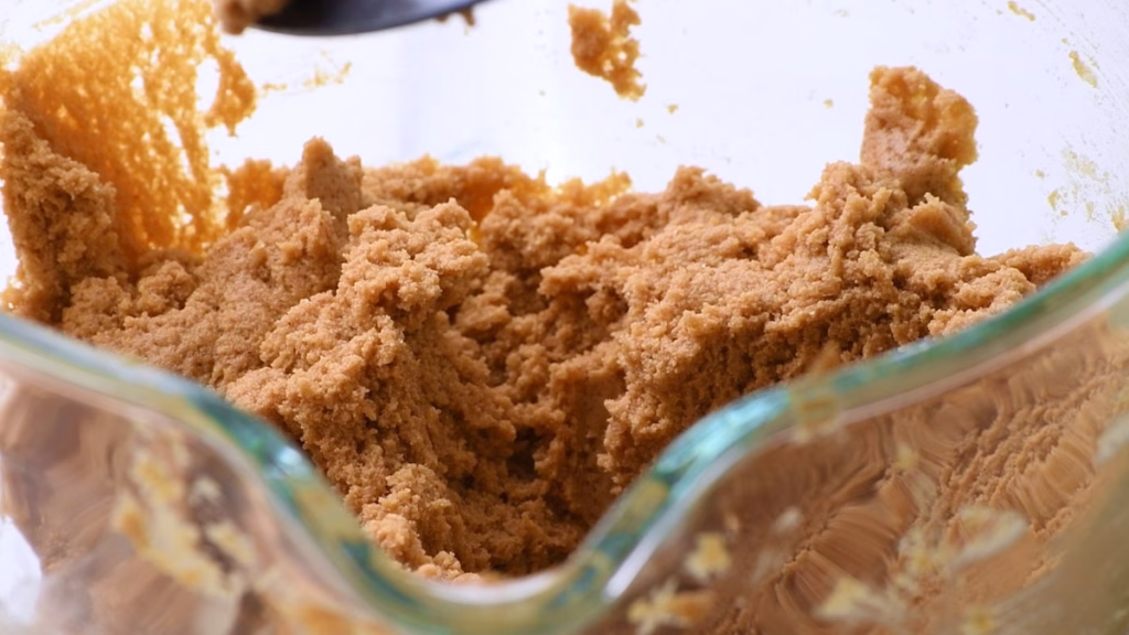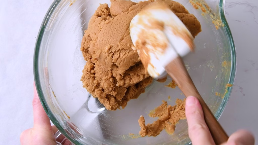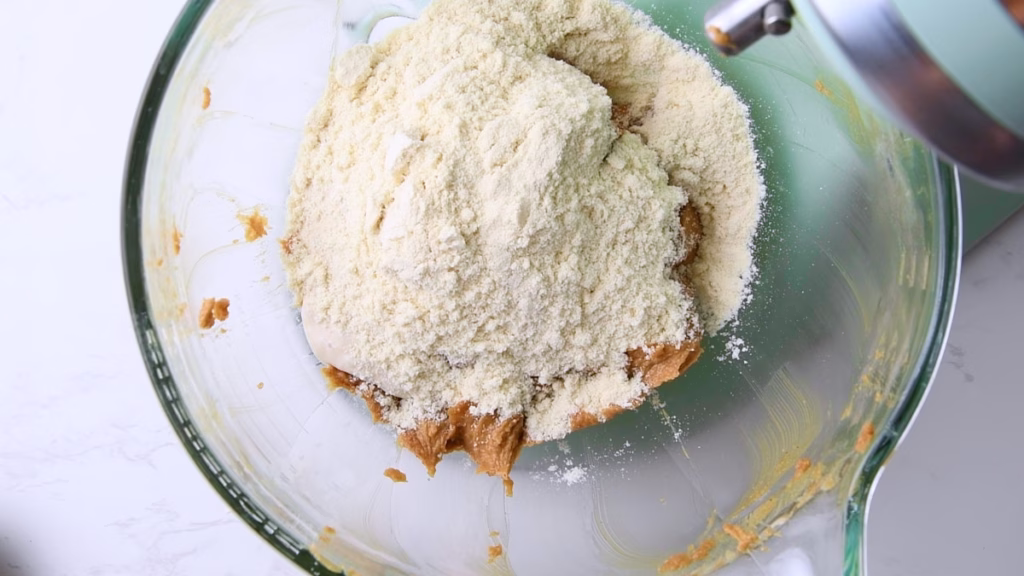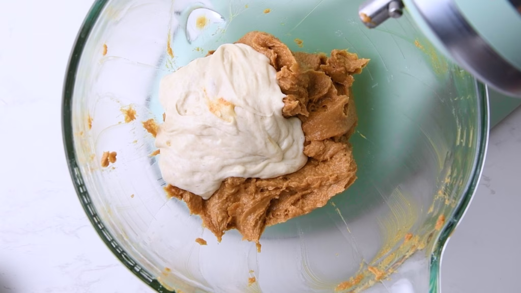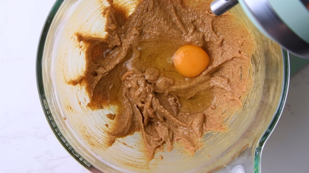 - Mix in the egg, peanut butter, and vanilla, until fully incorporated and creamy.