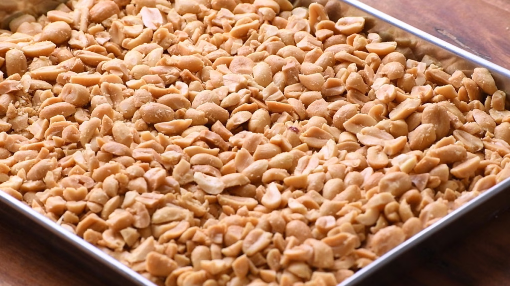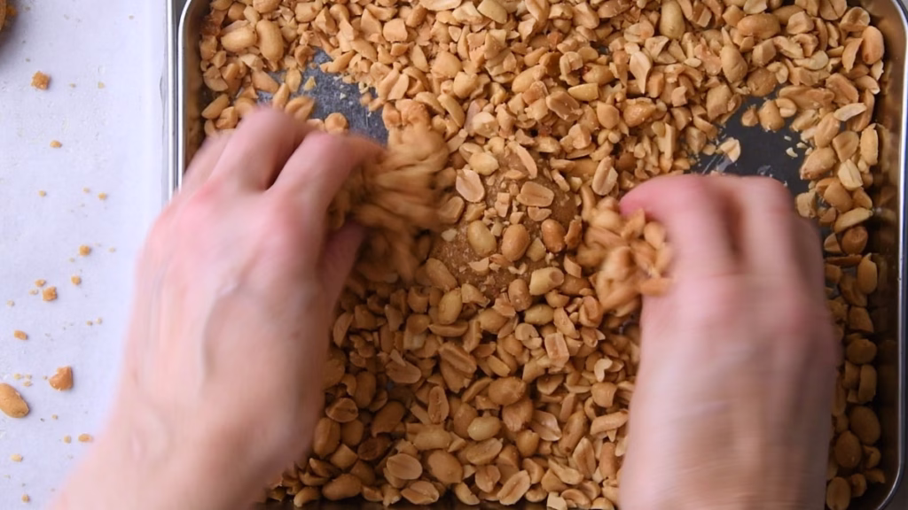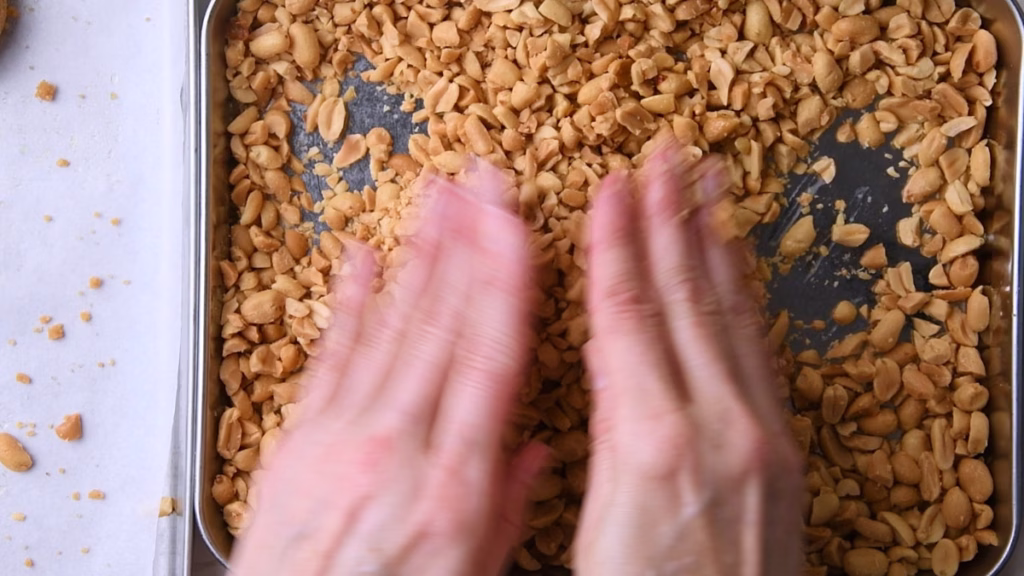 - Very roughly chop your peanuts. It’s totally fine if you have some halves in the mix.