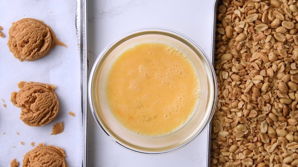- Egg – Without the egg the peanuts won’t stick to the cookie dough.