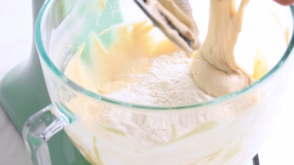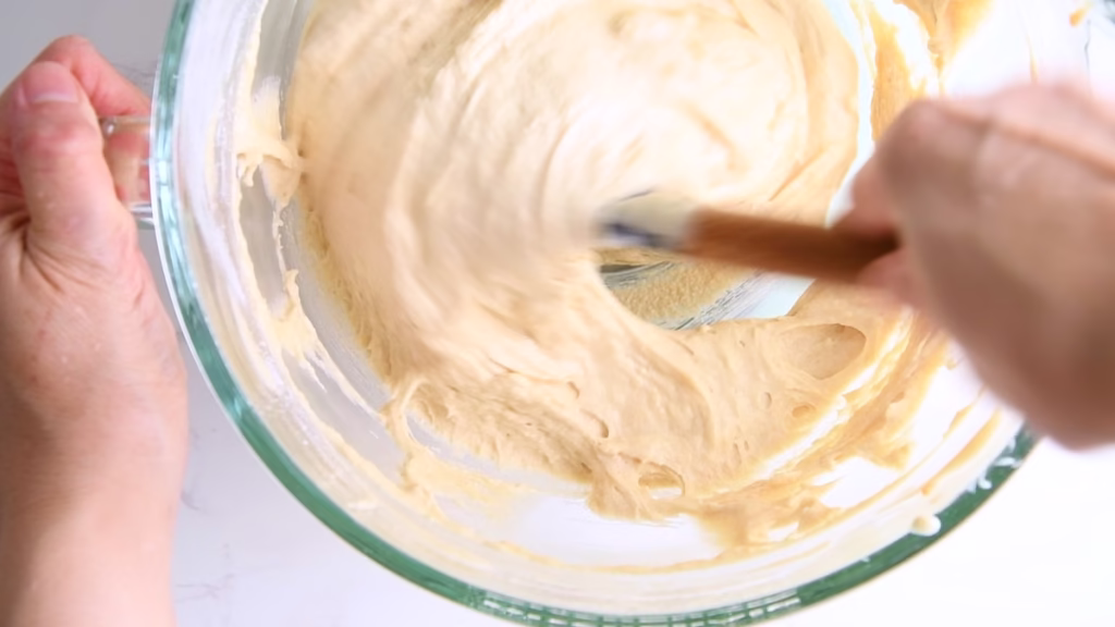 - Add both flour mix and sourdough discard to the batter and gently fold in until just combined.