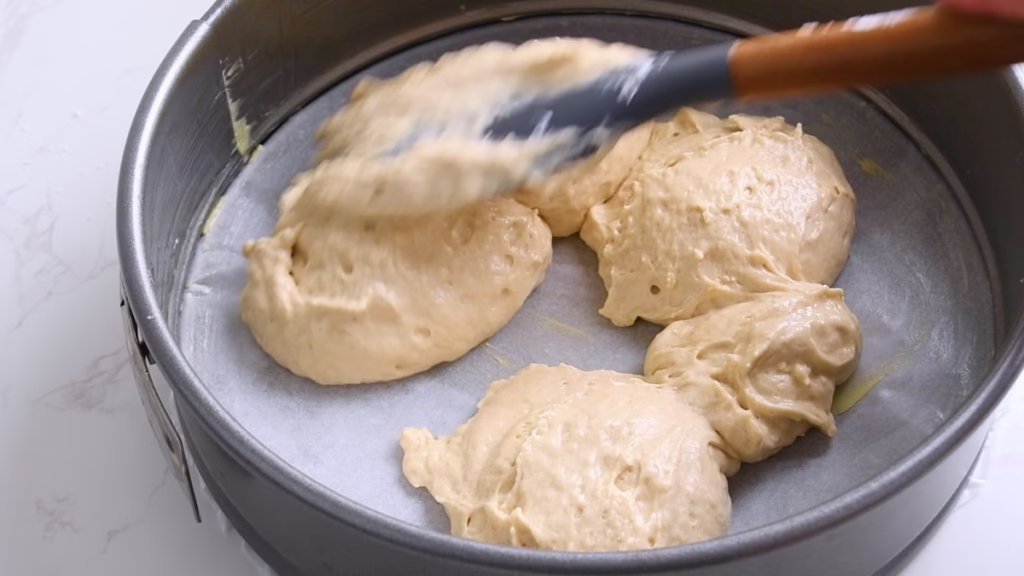 Using a large cookie scoop or spoon, cover the bottom of your springform with about half of the batter.