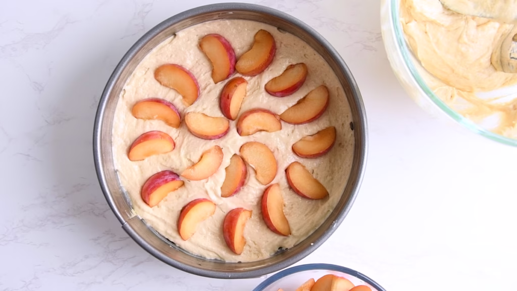 - Top with the second half of the batter and finish with the second half of the plums. I put them in circles, for decoration, but scattering them over works too.