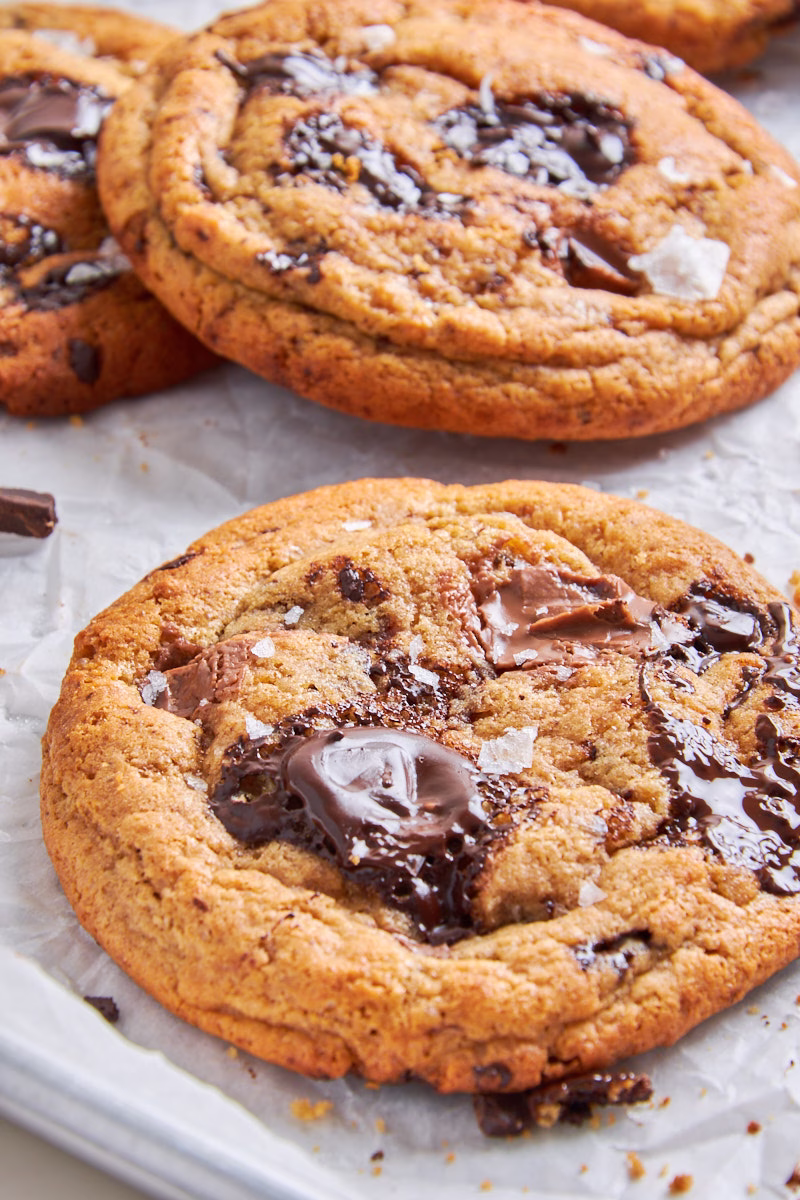 - Chocolate – After watching Claire Saffitz make her famous chocolate chip cookies a few years ago and trying the mix of dark and milk chocolate, there was no going back for me. Good quality eating chocolate works best to get those molten chocolate puddles, as chocolate chips are created to keep their shape.