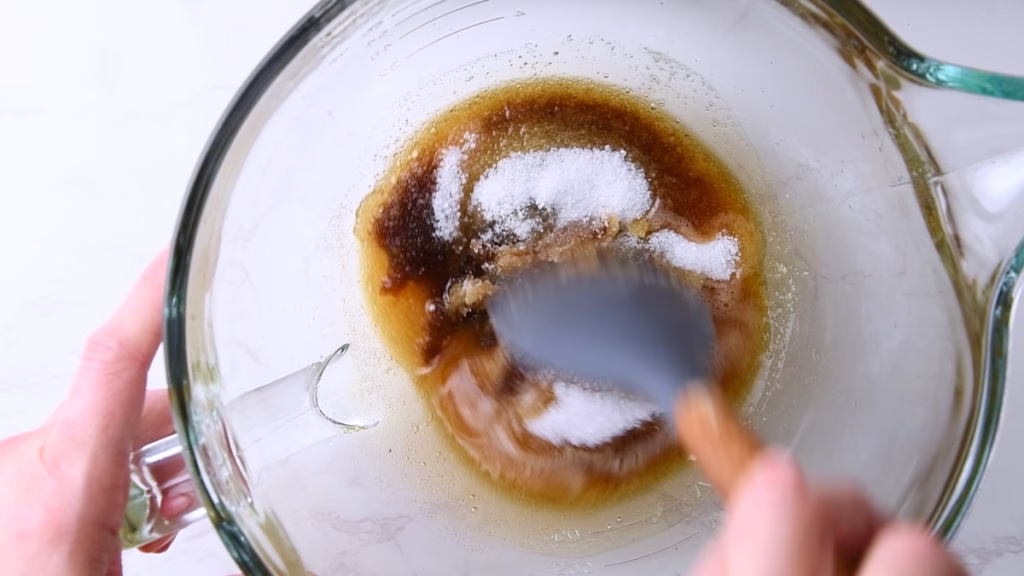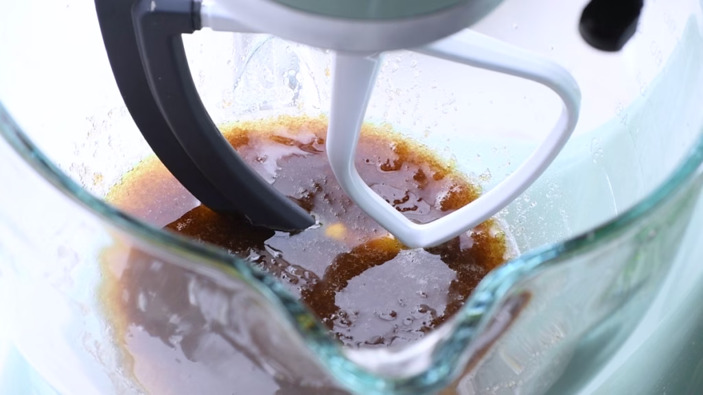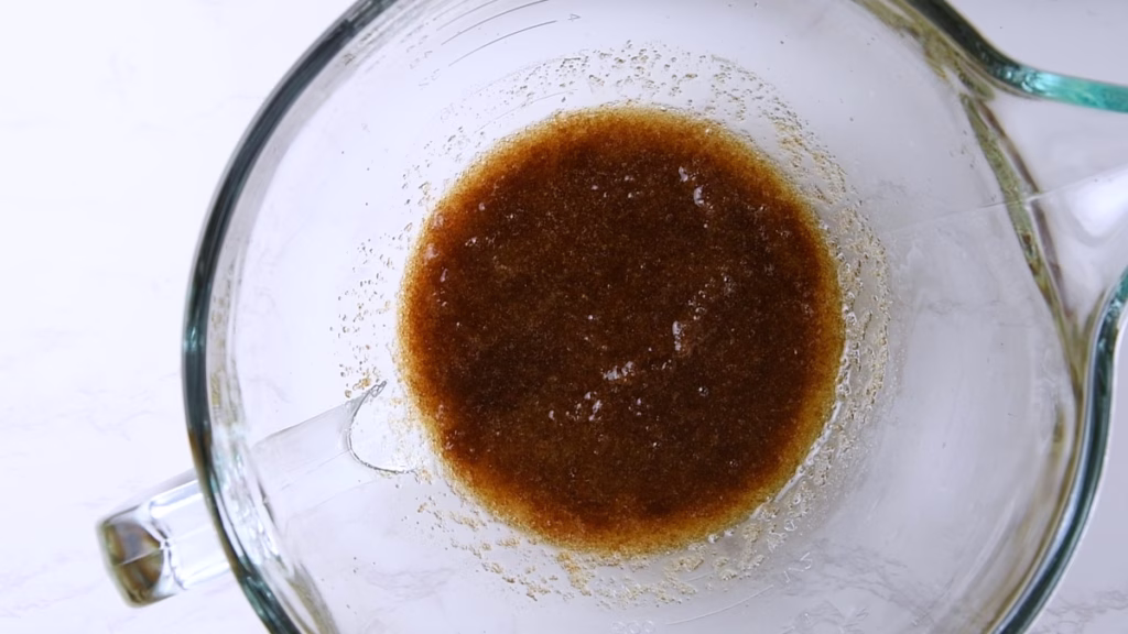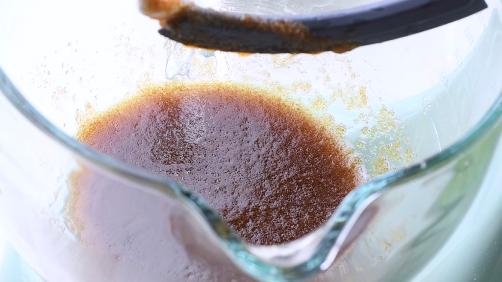 - When the bubble sizes and sounds start to change, lower the heat to medium low and keep stirring until it smells deliciously nutty and has a deep amber brown. Immediately transfer to your mixing bowl and add both sugars. Briefly stir, then allow to sit for about 5 minutes.