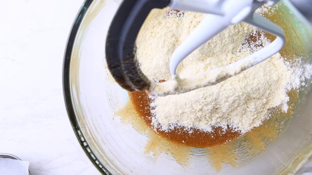 - This step, using still liquid butter, is the main difference between my recipe and most classic cookie recipes. Plus the lack of baking powder, which allow the cookies to spread despite the rather absorbent protein powder.