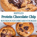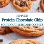 I know what you’re thinking—does the world really need another chocolate chip cookie recipe? Maybe not, but I absolutely needed this one. This recipe is the result of my long search for a cookie that combines the complex flavor of sourdough discard and a little protein boost while still delivering that elusive, beautiful rippled spread. Most protein cookie versions bake up into thick, puffy domes, but after many tests, I finally cracked the code by cutting the baking powder and employing one simple trick during baking. If you want the full butterscotch flavor, slightly crunchy outsides, and fudgy centers, all balanced with a hint of sourdough tang and a protein lift, this is the recipe I hope you’ll love.