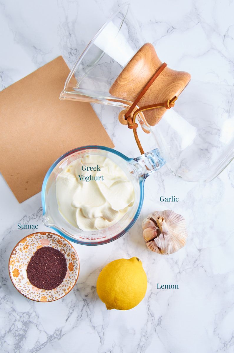 Full fat Greek yoghurt is the main ingredient for Labneh. Be sure not to use 0% fat, as it will taste rather floury when strained. You want it creamy. I’m using Glenisk, which is widely available in Ireland and I just love the flavour. Make sure to use a type of Greek yoghurt you generally enjoy eating, since the flavour will intensify when the water is reduced.