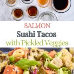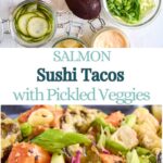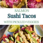 - Serve immediately and enjoy your Salmon Sushi Tacos with Pickled Veggies!
