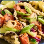 Tempura batter – A very quick and light tempura batter transforms the nori sheets into crunchy taco shells, keeping the classic sushi flavours, but adding and addictively crunchy element to this dish.