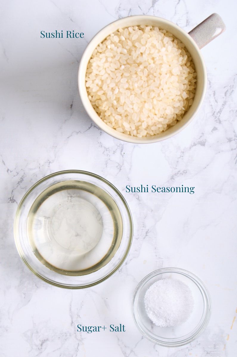 - Rinse the sushi rice under cold water until the water runs clear. Cook the rice according to package instructions. Once cooked, let it cool slightly and then mix in the sushi seasoning until well combined.