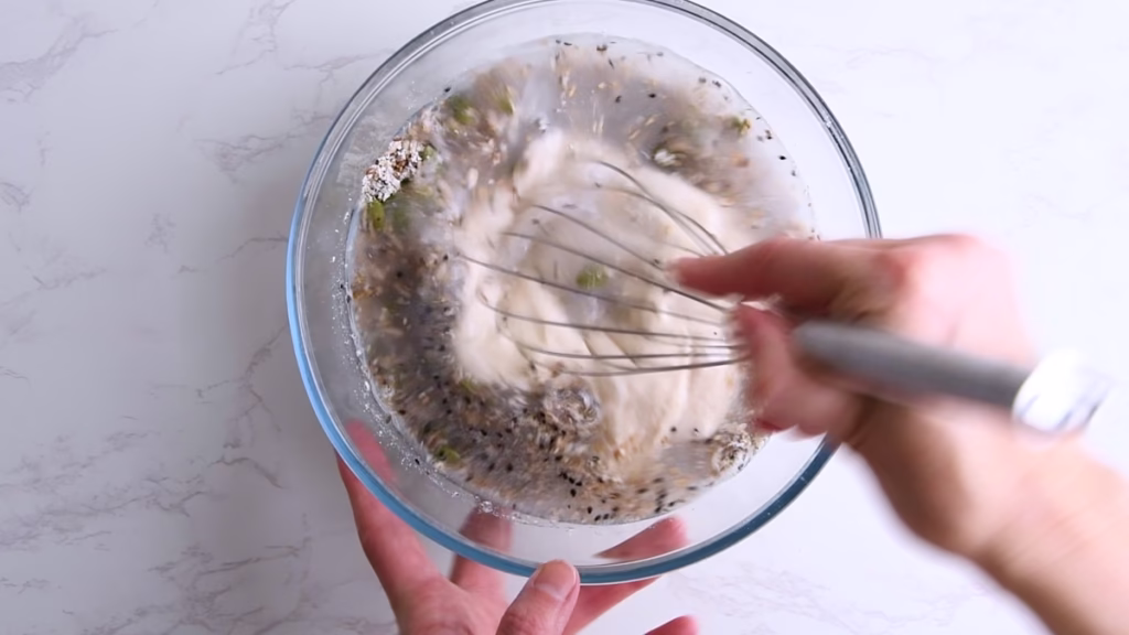 - Whisk – You will need a whisk to get both sourdough discard and protein powder integrated smoothly and the flaxseed clumps that form while soaking broken up and well distributed.
