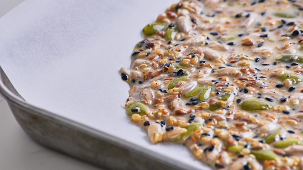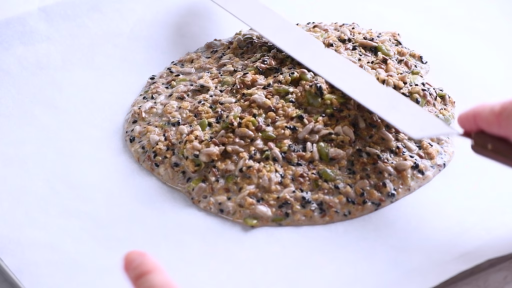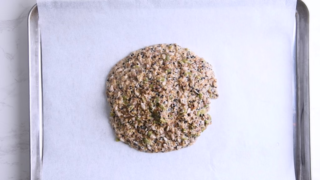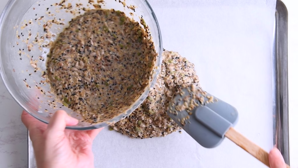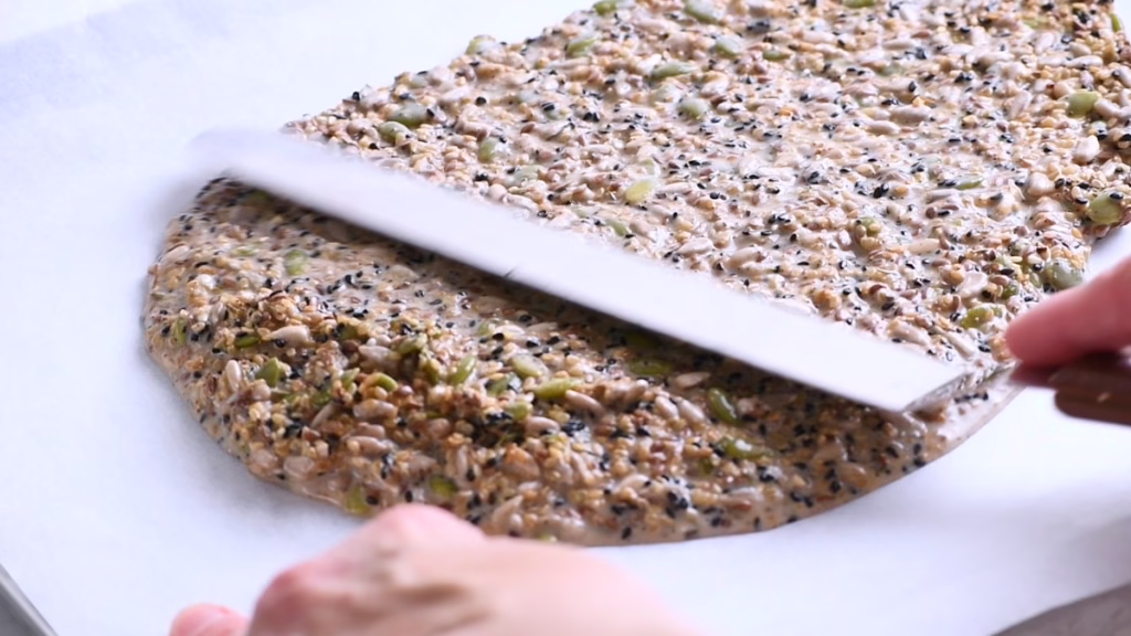 Spread them thinly across two sheet pans and you are ready to bake your extra crispy multi seed crackers.