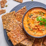 Looking for a healthier, protein-packed snack that you can easily make at home? These Seeded Protein Crackers with Sourdough Discard are incredibly satisfying and simple to prepare. They’re loaded with fiber and healthy fats, and thanks to unflavored protein powder and the binding power of flax seeds, each one delivers over 3 grams of protein. The sourdough discard adds an addictive, complex tang—a deeper flavor than you’ll get from most store bought crackers. This is an easy, one-bowl recipe that takes minimal prep time, resulting in two sheet pans of wonderfully crisp crackers, perfect for dipping, topping, or building a beautiful snack board.