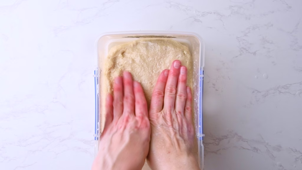This means it gets the cold fermentation done and is now ready to shape the next morning or, if I’m busy, for up to 2 days after.