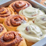 - The timing of applying the frosting matters – If you apply your frosting on the rolls right out of the oven, it will just completely melt and run off. If you apply it when they are cold, it won’t melt at all and just sit on top.