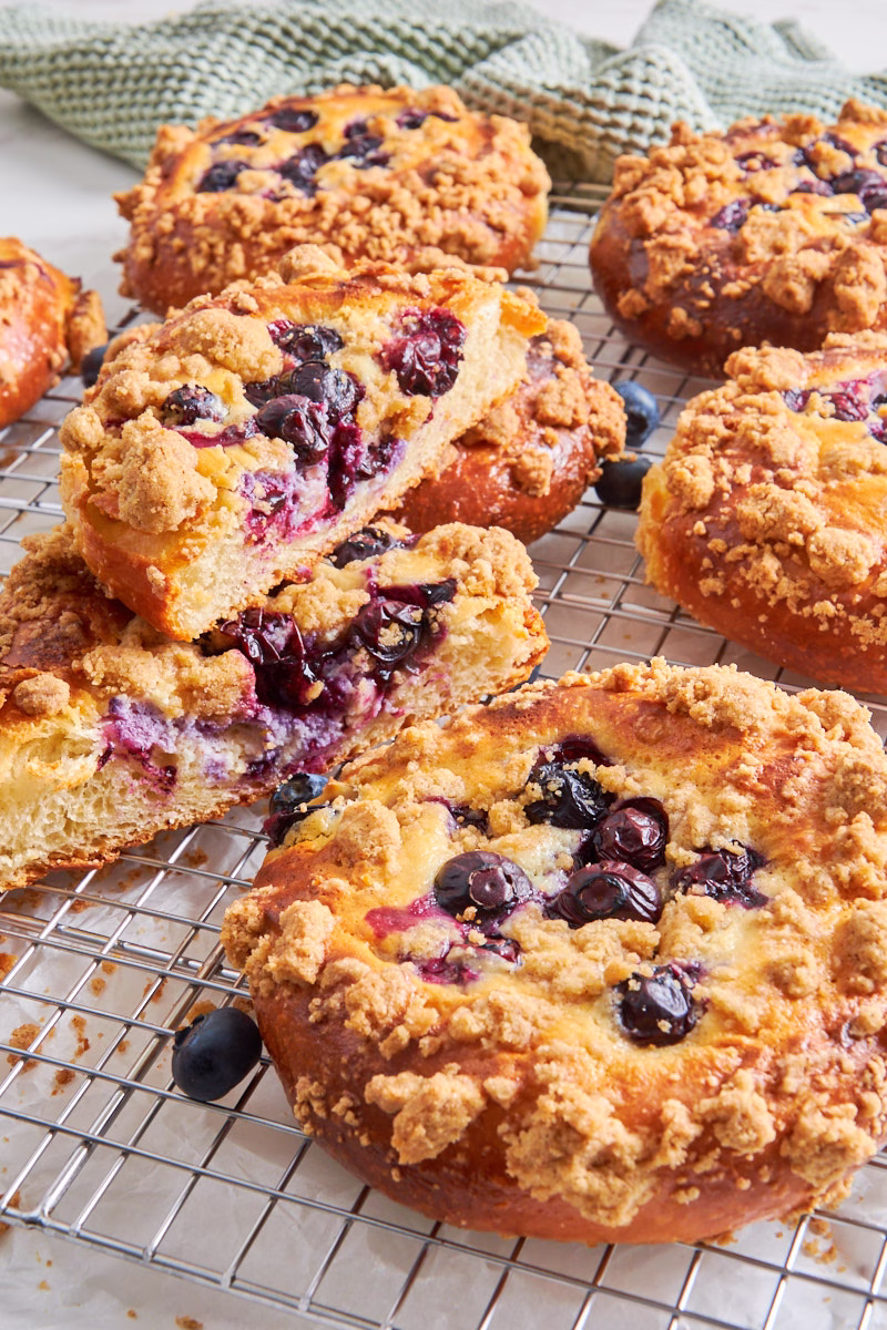 Absolutely. These stay remarkably soft for 2–3 days thanks to the Tangzhong method. I recommend storing them in the fridge because of the dairy in the cheesecake filling. For that “just-baked” experience, pop them in the air fryer or oven for a few minutes to crisp up the crumble and soften the dough before serving.