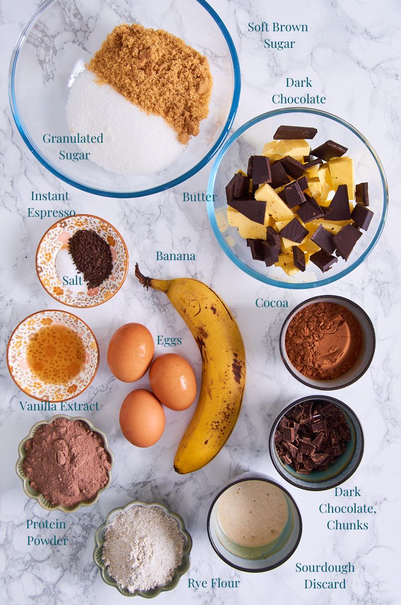 Deeply chocolatey and fudgy Sourdough Brownies with Protein, there is no compromising on flavour here. Yet you get 4-5g protein with each. A hint of sourdough tang, to balance the sweetness and rye flour, to add moisture. These are utterly irresistible