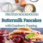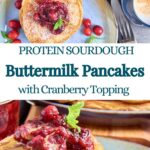 Using protein powder to replace part of the flour and sourdough discard to add a gentle tang to these pancakes, they make a perfect breakfast with a good hit of protein. Leftover cranberry sauce is a delicious topping choice.