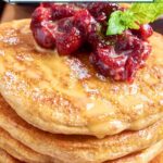 And while these pancakes have no cream or hazelnuts, the cranberry sauce and advocaat drizzled over made for a worthy breakfast reminder of it! Well….late breakfast. Not sure I can have advocaat early morning, but if you enjoy it, I’m certainly not judging!