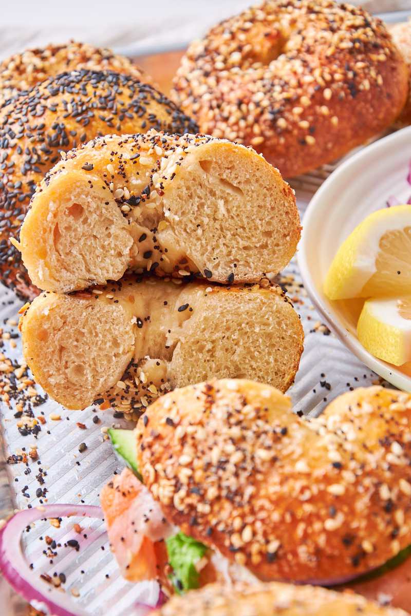 Allow your bagels to cool for 15-30 minutes before cutting open.