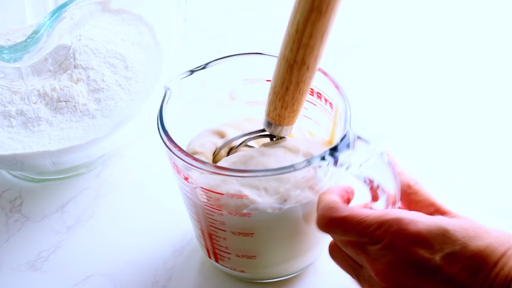 - Take 17g of your existing sourdough starter. Add 70g all-purpose flour (or bread flour) and 60g filtered water (or good quality drinking water). Leave it in a lightly covered container on your kitchen counter until the next day. If your kitchen is particularly warm, especially in summer, preparing it the morning before baking might be best.