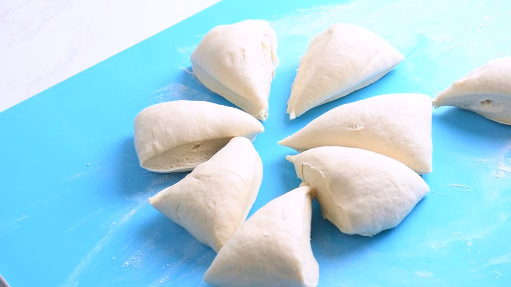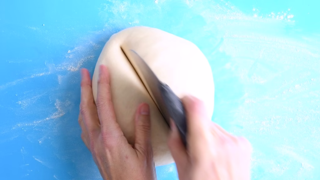 - Gently pat it out a bit and, using a bench scraper or knife, cut it into 6-8 even pieces. I find that easiest by cutting it like a pie.