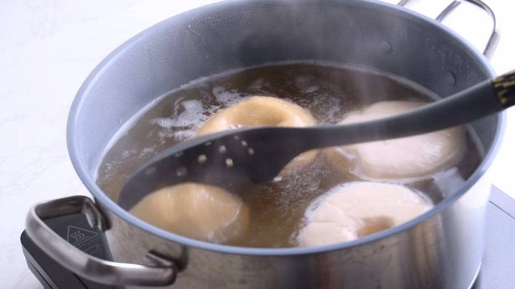 - Helps any toppings to adhere to the bagels as it creates a sticky surface for a few minutes after taking them out of the hot water.