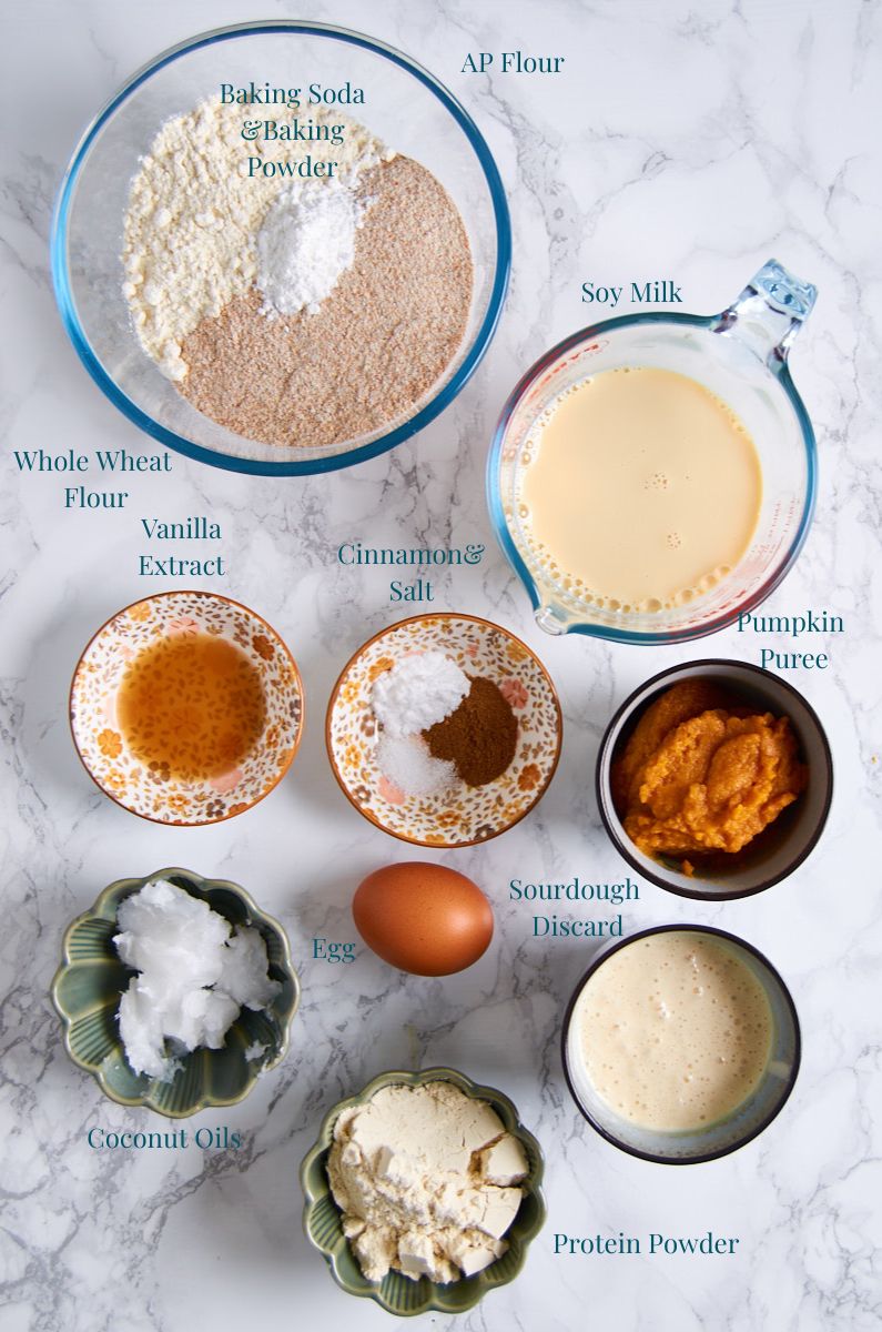 - In a large mixing bowl, combine the sourdough discard, pumpkin puree, egg, coconut oil, and vanilla extract. Mix well until the ingredients are fully incorporated.