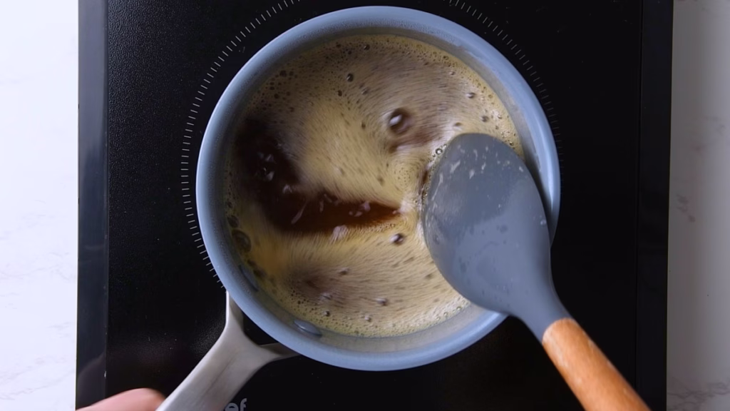 - In a saucepan, melt your butter over medium high heat until it starts to wildly bubble. Stir the whole time, to get even browning. A silicone spatula is best, as it gets all those lovely brown bits from the bottom of the pan.