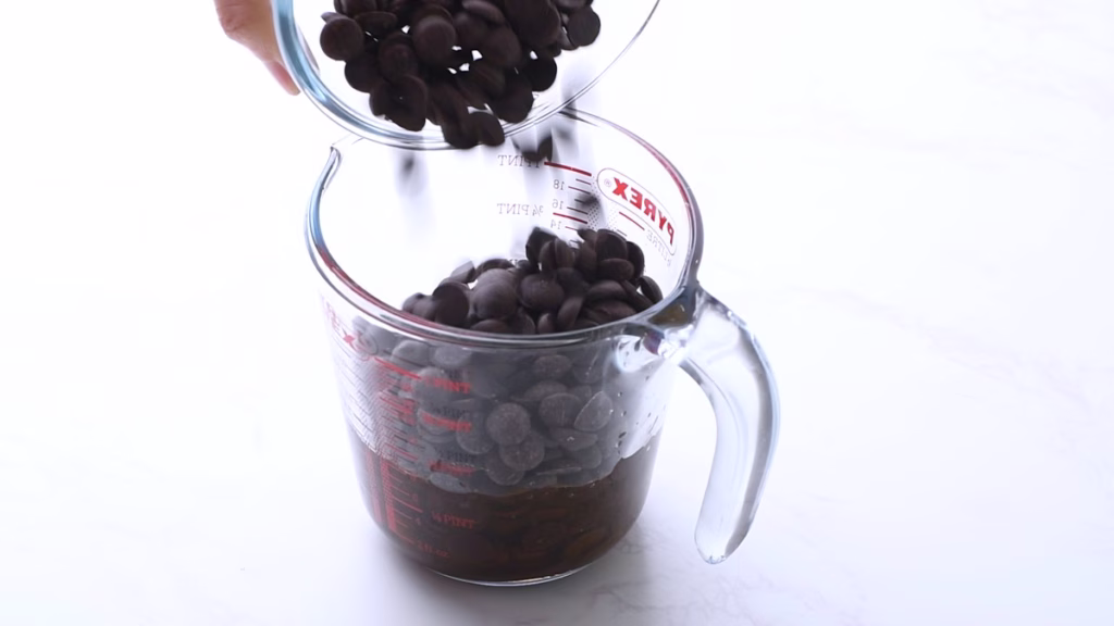 - Get all your ingredients ready and put the dark chocolate chips/chopped chocolate into a heat proof bowl.